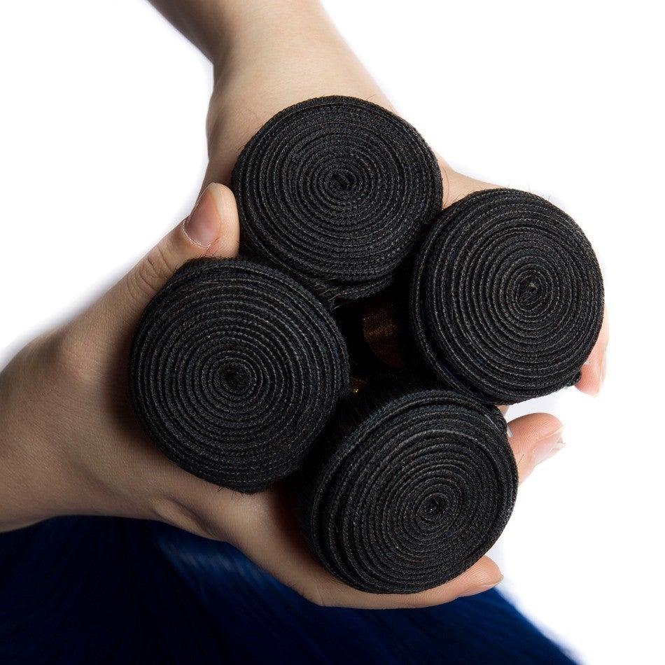 10A Grade Brazilian Blue Straight BUNDLES with CLOSURES & FRONTALS #1B