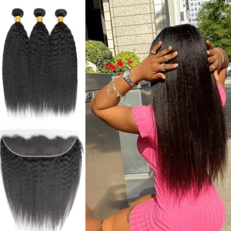 8A Brazilian Hair Weave Bundles With Frontal Sheer Kinky Straight Human Hair Bundles With 13x4 Lace Frontal