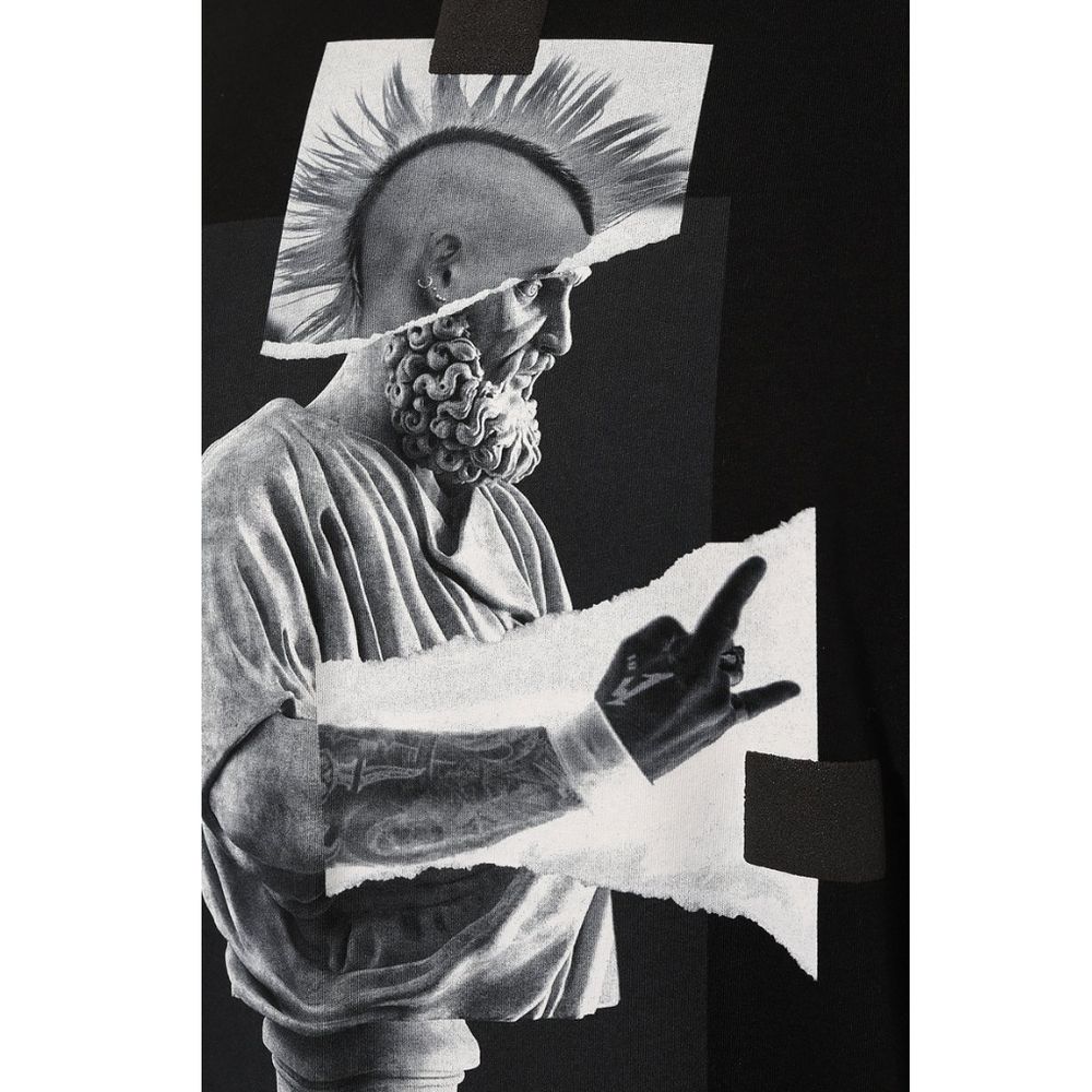 Diego Venturino black cotton crew neck t-shirt with front print and rubber applications